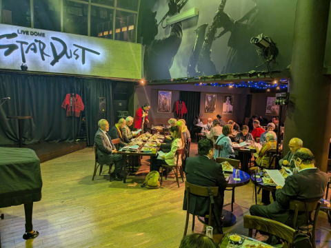 | 仙台市青葉区の「JAZZLIVEDOMESTARDUST」で「敬止祭」を開催しました。 参加者は57名でした。遠藤敬止翁の曾孫にあたる浦友子様、玄孫にあたる浦達夫様にも御臨席をいただき、小松宮宮家とのとても興味深いエピソードなどを御披露していただきました。また、浄土宗充國寺の三浦宏純住職に法話をいただき、おおいに盛り上がりました。 |